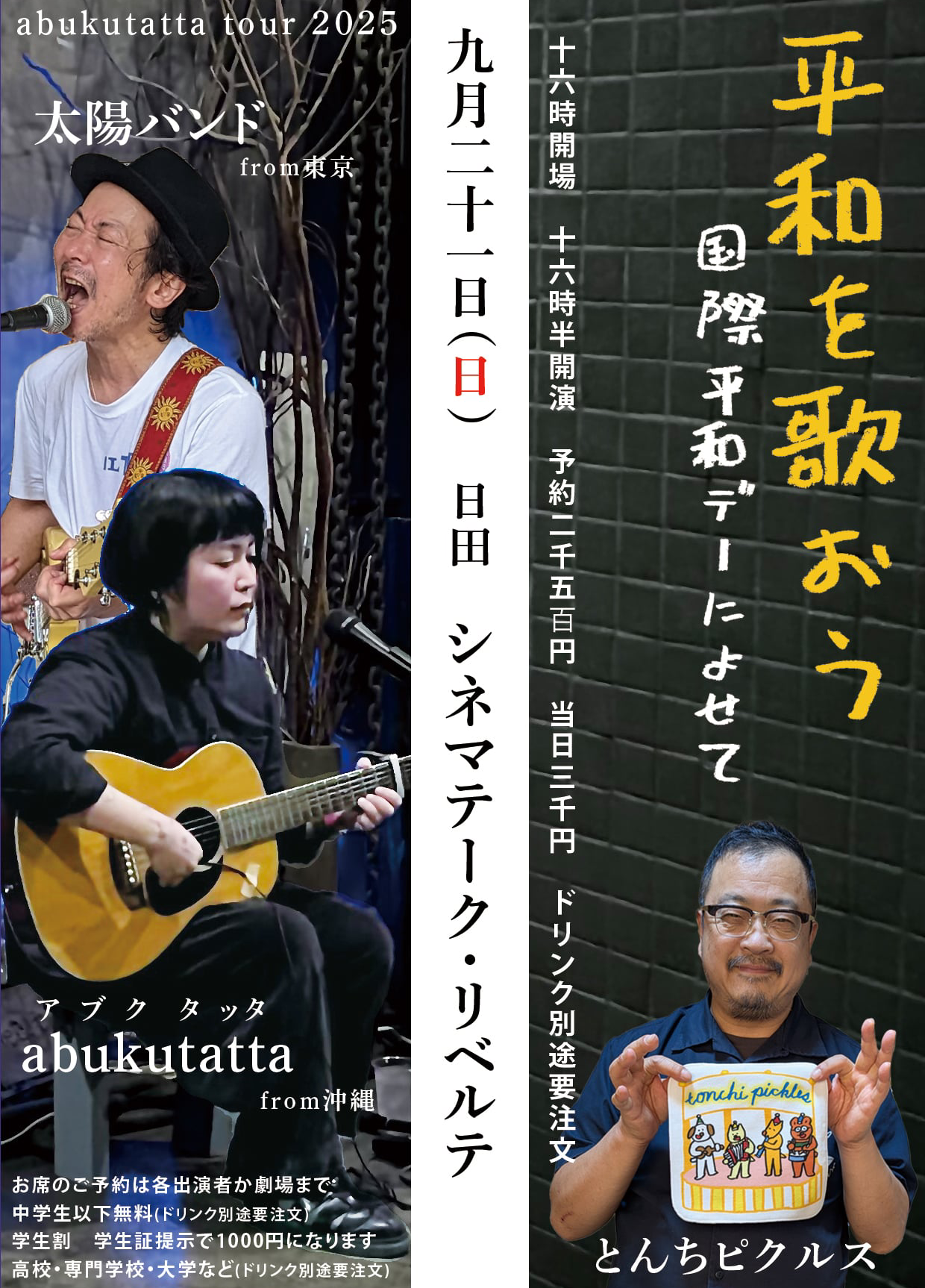 料金|前売1500円/当日2000円(要1ドリンクオーダー)